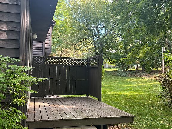 Welcome to this bright and inviting townhouse in Farmington! Located in a quiet neighborhood just minutes from shopping, dining, and major highways, this townhome combines suburban living with easy access to Canandaigua, Victor and Rochester. The living room welcomes you with vaulted ceilings, modern flooring, sky light, gas fireplace and built-ins. Open concept to kitchen which boasts ample storage space, breakfast bar, and appliances including stainless steel fridge dishwasher. Upstairs find two bedrooms including a master with double closets and access to an updated full bath. The spacious basement includes plenty of storage room, gym flooring, weight rack and bench, and washer/dryer. This end unit is perfect for entertaining or enjoying the wooded yard with privacy fence, deck, a creek and tons of flat green space! This rental is a short walk to the Auburn Trail/Mertensia Park and is in the Victor School District.