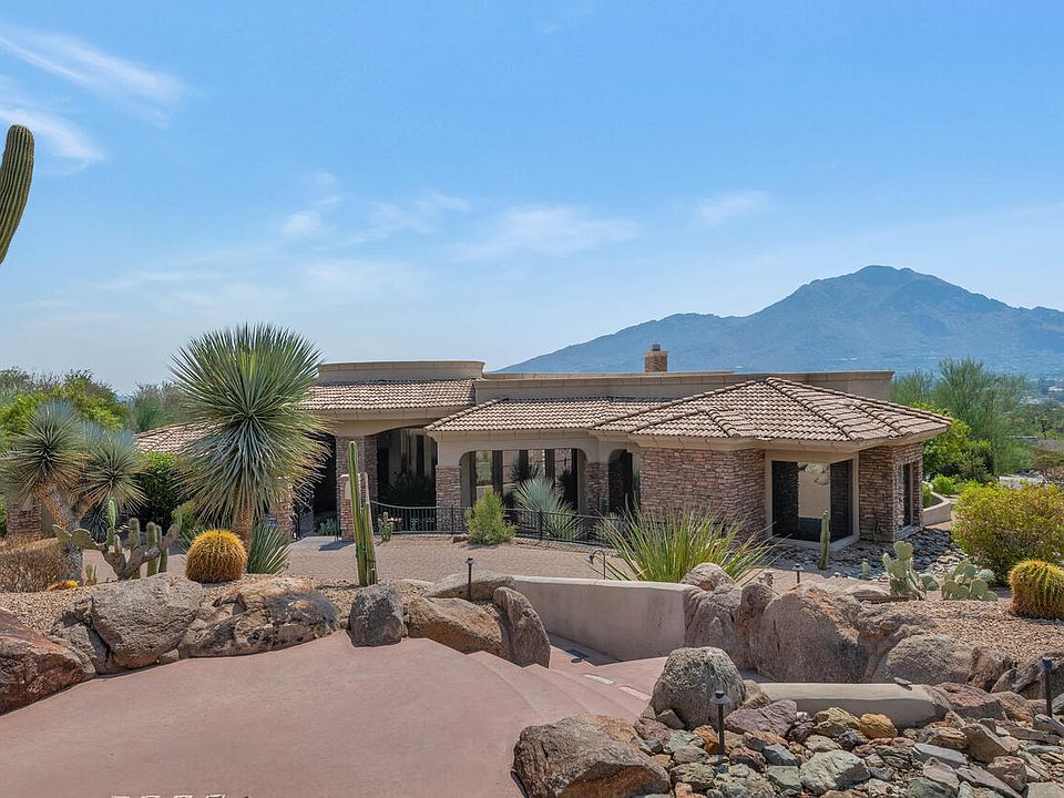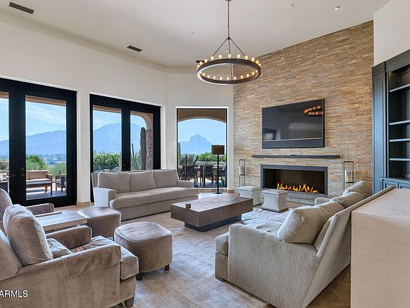 RARE TO FIND VIEWS LIKE THIS AT THIS PRICE POINT! This traditional home captures expansive views of Camelback and Mummy Mountains from its elevated lot. Sophisticated yet warm this home located in prime Paradise Valley surrounded by $10M plus homes. The open great room floor plan is designed to showcase the scenery while offering seamless living and entertaining. The home flows out to a gentle sloping backyard with multiple sitting areas, a negative edge pool and hot tub. The primary suite is split w 3 additional ensuite bedrooms, each room with views. A separate den is thoughtfully placed in-between two guest rooms, a sitting /exercise room in the primary, plus a rich wood paneled office which has Mummy Mtn views. Remodel or enjoy this luxury home. New roof in 2023.