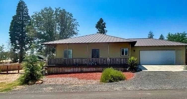 Beautiful Paradise home built in 2021, this custom 1224sf home features 2 bedrooms, 2 full baths on a level .44/acre! Other highlights include upgraded amenities with wood laminent and tile flooring, wood interior doors, beautiful cabinetry, modern appliances and solid surface counters. The open great room concept includes a coffered ceiling and access to both covered front porch and covered rear porch. It also offers high efficiency mini split heating and cooling, metal roofing, ample parking with a 2 car garage and space for RV. Fully fenced rear yard and low maintenance front yard on almost half and acre! Perfect lot for an ADU! Also wired for portable generator! Situated near schools and shopping. Welcome home to the tight knit community of Paradise!