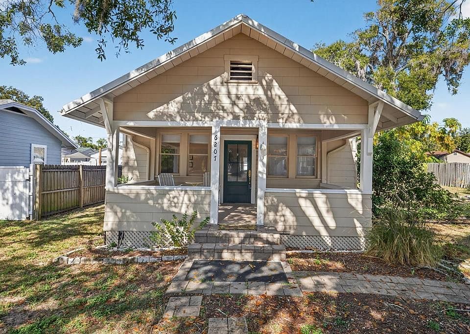 Beautifully updated 2 bedroom, 1 bath historical home just steps from downtown New Port Richey with bars, restaurants and shops all at your fingertips. As soon as you walk in you are welcomed with high ceilings and wood plank floors, updated kitchen with farm house sink, and refreshed bathroom. Enjoy lots of major updates like the metal roof, and instant hot water heater, and propane cooking! Enjoy a covered front AND back porch perfect for people watching or have more privacy in the back. The property also includes a detached garage/shed, and convenient access from both the front street and rear alley! Home is on a huge lot offering space for parking, additions, or even a possible future pool. Currently the lot has a gazebo and would be the perfect place for a garden or a white picket fence! You must see this home in person for all of it's character! And the location CAN'T be beat, in the heart of one of the most fastest growing cities in Pasco county. New Port Richey is golf cart friendly, and has lots of activities year around including: concerts at Sims Park, fireworks, boat shows, parades and more! This is the perfect opportunity to be in the heart of the Historic City of New Port Richey!