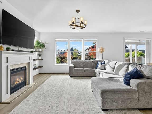 Move-in ready 4 bedroom home with 2.1 bathrooms and 2,188 square feet of spacious living. Great room floor plan with luxury vinyl plank flooring and a cozy fireplace with built-in shelving. The kitchen boasts stainless steel appliances, convection oven with gas cooktop, quartz countertops, a pantry and an island. Relax in the primary suite with double sinks, walk-in closet, soaking tub and a separate shower. All 4 bedrooms are conveniently located on the upper level! The home is complete with a covered patio, sprinkler system, and fenced backyard.
