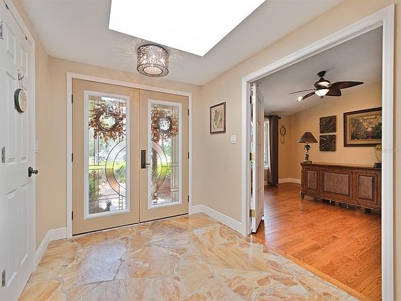 Significant price decrease!!!! PREPARED TO BE IMPRESSED. This home is for those seeking luxury finishes and abundant space for Florida living and relaxation. Located towards the end of a charming winding street, the 4/3.5 split & open floorplan features solid hardwood floors throughout, exotic granite countertops, matching KitchenAid appliances, cabinetry with sliding pull-out drawers and soft-close doors, an antimicrobial copper kitchen sink, a fun martini-shaped bar sink, an 800 s.f. master bedroom with dual-sided stacked stone fireplace, a master bath with rainfall shower, deep soaking tub and hands free commode/bidet, separate his & hers closets with organizers, Carrara Marble in secondary bath, tons of closet space, an enormous flex space, a laundry room with 2 sets of washers/dryers, an additional detached 1,800 s.f. block-construction garage that can fit 4 vehicles for a total of 6 car garage + ac workshop and a park-like yard filled with Live Oaks, Magnolia, and several kinds of Palm Trees. The 1.12 acre lot is quiet and private; perfect for storing boats, trailers, and rvs, and there’s plenty of room to add a swimming pool, volleyball or tennis court, children’s playset, greenhouse, chicken coops, and a horse stall. There’s room for all! Located in a top school district with lots of restaurants, shopping and grocery stores nearby. No HOA and not in a flood zone