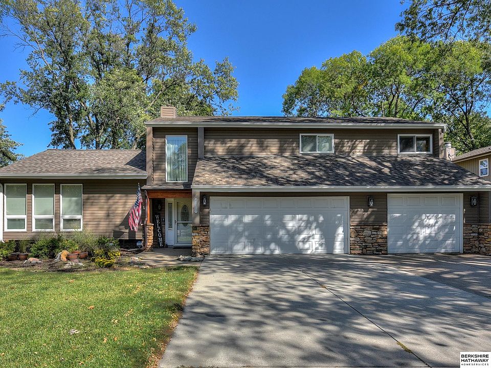 Unbelievably spacious, multi level home in the coveted Stony Brook neighborhood & popular Millard school district. This home has been meticulously maintained & is updated from top to bottom. Some of the eye catching details, stellar sized rooms, all with spacious closets, massive walk in primary closet with staircase to bonus room that could be an office or craft space, basement includes storm shelter storage room & ample storage. Home also has a large, fenced back yard with shed & a gas line out back for all your entertaining fun. Sprinkler system. Updated flooring throughout the home. Solid 6 panel doors. New Primary bath shower 10/2023. Stove 2022. Hot Tub 2018. A/C 2020.Water Heater 2019. Furnace 2008. All showings start Saturday, October 7th. Assumable VA loan of 2.75%