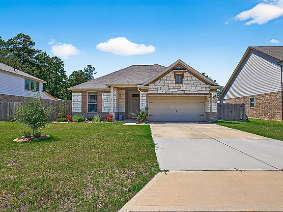Welcome to a family-friendly haven! This charming home is located on a quiet street with no through traffic, offering both the serenity of a private retreat and a safe environment providing a safe and peaceful environment for children to play and a close-knit community to connect. Lots of extras included with this home! Solar Panels, generator, water softner system and refrigerator will convey with the property. Nestled in Deer Trail Estates, this 2022-built single-story home offers 3 bedrooms, 2 baths, and a dedicated study on a massive 1/3 acre. The gourmet island kitchen features granite countertops, 36" cabinets, and stainless steel gas appliances. Enjoy a spacious primary suite with dual sinks, a soaking tub, and separate shower. Wood-look vinyl plank flooring flows through the main living areas. Outside, a covered patio and large backyard provide space to relax or add a pool. Zoned to Conroe ISD with easy access to I-45, Lake Conroe, and The Woodlands.