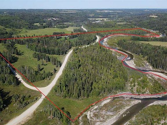 For more information, please click the "More Information" button. Scenic 90.5 acre farm 20 minutes NW of Sundre, Alberta with a half mile riverfront on the James River. This is very well set up for a small livestock operation / hobby farm. The main home is a 2874 Sq Ft, 2008 custom built one and a half storey house with oversized double attached garage, ICF basement, and Hardieplank siding. The main floor has 9 ft. ceilings and lots of windows to let in an abundance of natural light and giving great views of the beautiful landscape. This house has 5 bedrooms. The 2 upstairs bedrooms both have their own 4 piece ensuite bathrooms. There are 2 bedrooms on the main floor (one of which is currently used as an office), and one large bedroom in the basement. There are a total of 3 - 4-piece bathrooms and 1 - 3-piece bathroom. Both the basement and garage have underfloor heat. There is a wrap-around deck on the South and West sides of the house. The garage has a large bonus room above it, currently used as a recreation room. There is also a second house on the property, a 1965 built 1137 Sq Ft bungalow on a concrete block basement currently rented to an excellent tenant on a month to month basis. There is a 28 x40 ft. heated and insulated shop, a 16 x32 ft open front storage shed, 2 garden sheds and a small greenhouse. There are approx. 45 acres of productive pasture and beautiful gardens including a large fenced vegetable garden, and 45 acres of recreational land near the river. It has good corrals, 5 smaller paddocks, pumphouse with 3 livestock waterers, good livestock shelters, and good fencing. The property has a series of managed trails near the river for recreation - walking, fishing, swimming, camping, riding. This is a once-in-a-lifetime chance to own a beautiful parcel with 2 well kept homes and prime pasture and recreation land in central Alberta.