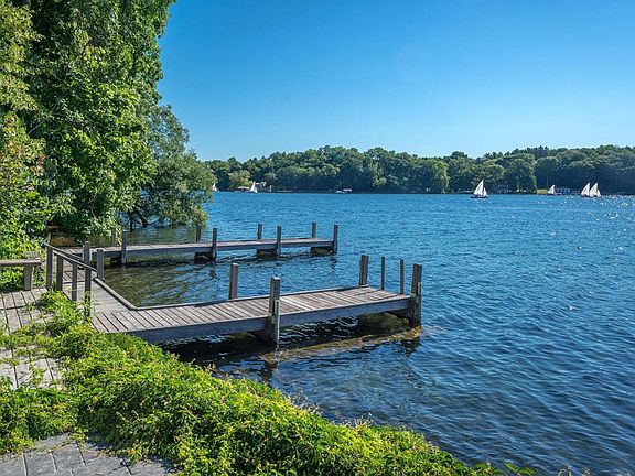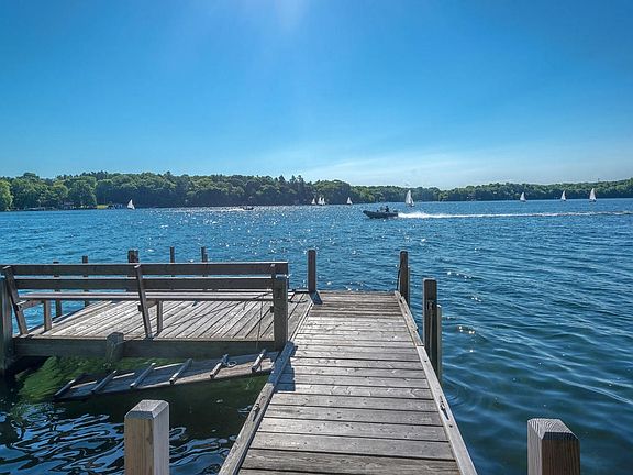 Fabulous property on 2.63 acre site with 205 feet of prime Pine Lake frontage on west shoreline with incredible views. Classic home with spacious room sizes, multiple fireplaces, beautiful hardwood floors and expansive wrap around season porch. Updated eat-in kitchen, hearth room, formal living room, dining room and bar room with curved window wall. Upper level floors feature 7 bedrooms, 4 baths plus game room. Pier with party platform, U-shaped 2nd pier, and 8 car garage.