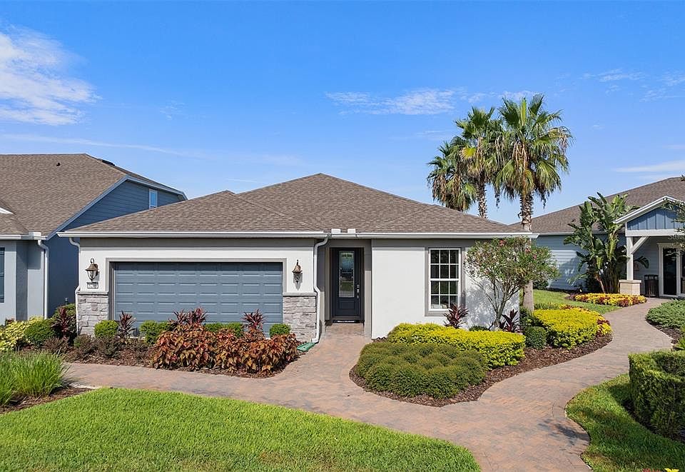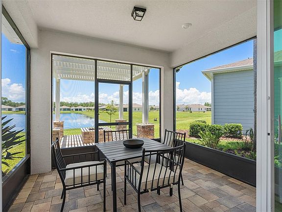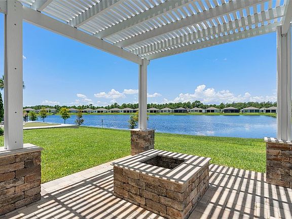 Under Construction. Del Webb Sunbridge is a gated 55+ active adult natural gas community offering new construction single family and villa homes with a low-maintenance lifestyle – and a Central Florida location in the center of it all. Del Webb Sunbridge offers an abundance of resort-style amenities with social events and activities centered in the 27,000-square foot clubhouse and planned by a full-time Lifestyle Director. With a zero-entry pool with lap lanes, resistance pool, poolside hammocks, and heated spa, sports courts, a movement studio, walking trails and more. Meet new friends at a resident club, take a painting class at one of the many art studios, attend a concert or show at the amphitheater, grab a bite at the on-site tavern & grille, or chat at the fire pits and grille pavilion. Get spoiled at Del Webb Sunbridge - after all, this is your time! Your home's exterior and yard maintenance are included, and fiber network provides up to gigabit internet speed. Del Webb Sunbridge’s resort amenities, sports courts, and Lifestyle Director with nearby Lake Nona truly make this the ideal neighborhood and a perfect location to call home. Welcome to the Prosperity Model Home by Del Webb, where convenience and luxury meet in perfect harmony. Originally a Model Home, this stunning one-story home offers 2 spacious bedrooms, an open flex room, and 2 beautifully appointed bathrooms situated on a homesite with a beautiful water view. The heart of the home is the brand-new kitchen, showcasing elegant 42” soft-close cabinetry paired with Quartz countertops. Enjoy the functionality and beauty of upgraded KitchenAid stainless steel appliances, including a refrigerator and a natural gas range, all highlighted by stylish tile backsplash, a single-bowl granite sink, upgraded faucet, and pendant lighting for that touch of sophistication. The open-concept design seamlessly flows into the gathering room, making this space perfect for both cooking and socializing. The spacious kitchen island offers the perfect setting for everything from everyday meal prep to casual dining with family and friends. Just beyond, the screened-in, covered lanai invites seamless indoor-outdoor living, ideal for enjoying Florida's beautiful weather year-round. The Prosperity Model Home truly shines when it comes to outdoor entertaining, featuring a pavered lanai complete with a charming gazebo and cozy fire pit, all overlooking a tranquil pond located just beyond the rear property line. As we travel back inside, the private owner's suite, located at the rear of the home for ultimate privacy, offers a serene escape with an en suite bathroom featuring quartz-topped dual vanity sinks, and a frameless glass-enclosed shower with a built-in bench. At the front of the home, the spare bedroom, bathroom, and versatile open flex room ensure that everyone has their own space. Wood-look tile flooring spans the home, except for in the bedrooms where you’ll find plush, stain-resistant Shaw Carpet. The laundry room itself offers both style and convenience with a brand-new Whirlpool washer and dryer adding a touch of elegance to everyday tasks. From the brushed nickel hardware finishes to the tall 8' interior doors, no detail of this former model home is overlooked. Comfort height toilets, epoxy finish on the garage floor, a custom built-in drop zone, and rain gutters add both style and ease to daily living. Don't miss out on your chance to own one of the best homes in the neighborhood! Schedule a tour today!