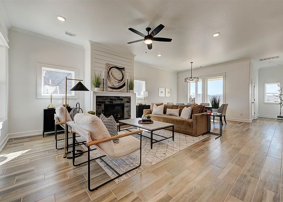 The Newport at Covell Valley is located within the Edmond school district which is one of the best in Oklahoma. Featuring the After 5 design package, this 2 story residence showcases an open floor plan layout, and bonus loft space. The open kitchen and living area boast a gas fireplace, wood tile floors, a generous island, pullouts in the cabinets, and a walk in pantry. The spacious primary suite provides a retreat on the backend of the house with a large walk in closet, 6ft tub, and a shower with schluter waterproofing. In the hallway off of the kitchen is a half bath, large storage space under the stairs, a mud bench and the laundry room. Upstairs, there are two decent size bedrooms with walk in closets, a full bath, and a bonus loft space that could be used as a play area, reading corner or game room. Off of the dining room is a covered back porch, perfect for your patio furniture and sits on a 0.14 acre lot with the backyard facing south. Additional features to this home include a full sprinkler system, tankless water heater, healthy air filtration system, smart system, and a storm shelter. This Zero Energy Ready Home is unrivaled among other energy-efficient homes with its superior design and construction. Adhering to the highest standards for energy efficiency, comfort, and air quality, it promises long-term savings. Some innovations include a thermal enclosure, water and moisture barrier, ENERGY STAR appliances, high-performance windows, a perfectly sized HVAC system, and so much more. The Covell Valley community is in a perfect location being only 1 mile from the I-35, and close to some of the best schools. It is a family friendly neighborhood with a pool being finished this summer.
