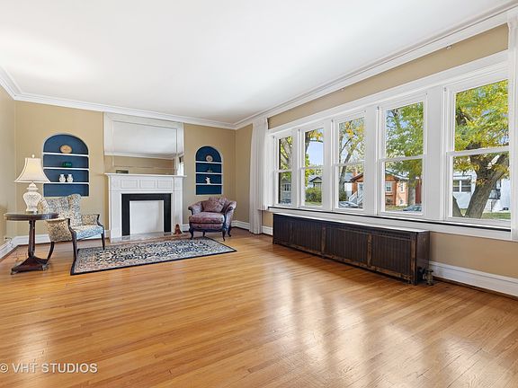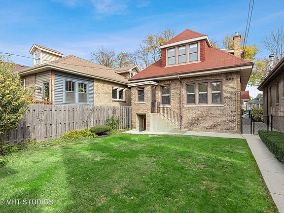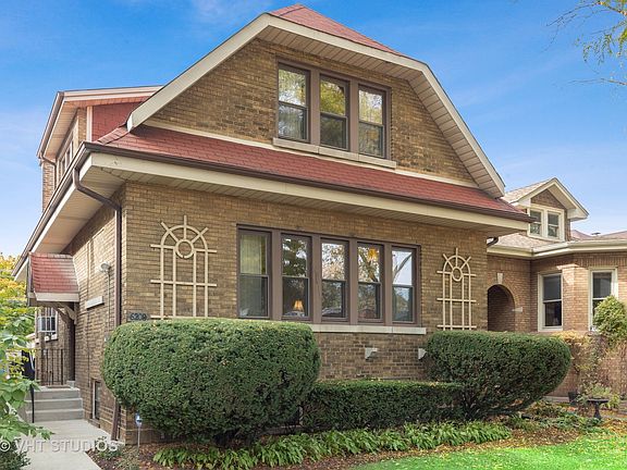 Don't miss this truly remarkable 3bed/2.5bath two story all brick bungalow in West Ridge. Situated on an extra wide lot on a beautiful tree lined street, this stunning home exudes old world craftsmanship and charm with many original details. Gleaming hardwood floors throughout, original baseboard, trim, and crown molding in incredible condition. This home has been lovingly cared for and maintained by long time owners of nearly 50 years! This home has extremely generous room sizes and is flooded with natural light. Be welcomed into this home by the fantastic foyer entry which is accompanied by a very large front entry closet. Huge formal living room space with gorgeous hardwood and original woodwork and a classic decorative fireplace great for sipping tea or coffee. Formal dining room large enough to accommodate your extendable table. Fantastic den/home office off dining room with loads of Southern and Western exposure sunlight is a perfect reading room or work from home space. Eat-in kitchen with lots of storage and cozy breakfast nook area. Recently renovated powder room on main level. Second floor features hardwood floors throughout and updated full bath. Three large bedrooms and oversized closets. Lower level has tons of potential with large family/recreation room, bar area, newly renovated full bath w/shower, and huge laundry/utility/storage area. This home is in excellent shape! Updated windows, electrical, newer boiler, and newer garage overhead door on the solid brick two car garage. Amazing back yard great for entertaining family and friends. Don't miss out on this wonderful opportunity!