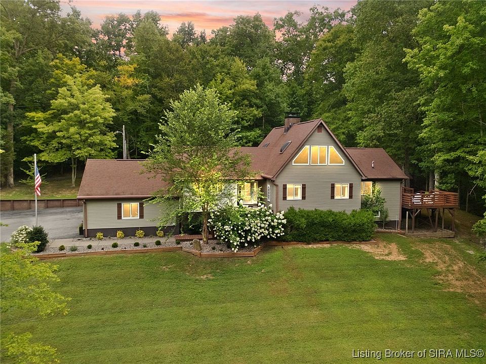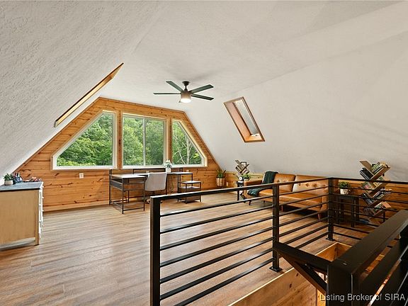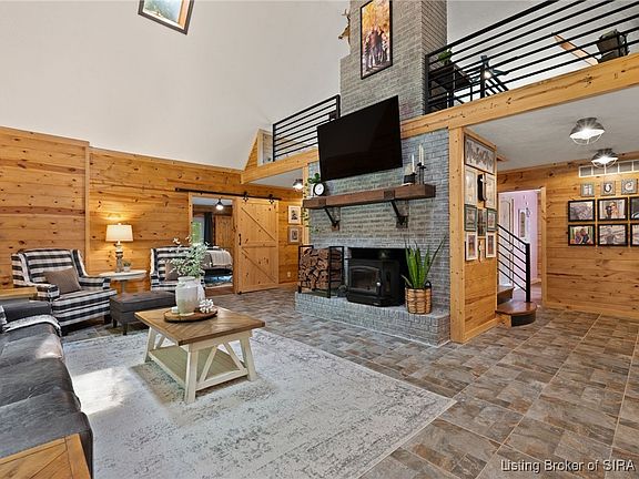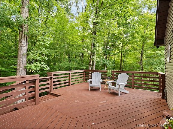 Nestled on OVER 5.6 ACRES in the heart of Floyds Knobs, this hilltop retreat offers rare privacy with quick access to top schools and just minutes from New Albany and Louisville. Cross the charming private bridge and follow the tree-lined drive to a home filled with natural light and serene views from every window. The open living area features soaring ceilings, a loft overlooking the great room, and a striking TWO-STORY FIREPLACE. The primary suite offers a unique spa-like layout with room to customize, while secondary bedrooms and a walkout basement provide flexible space for family or guests. Outdoors, enjoy the peaceful setting surrounded by mature trees...perfect for morning coffee or gatherings. Recent updates include a wood-burning furnace (Nov. 2024) to accompany the electric furnace for year-round comfort. SELLER IS OFFERING $2,500 TOWARD BUYER’S CLOSING COSTS. Schedule your showing today and experience this one-of-a-kind property.