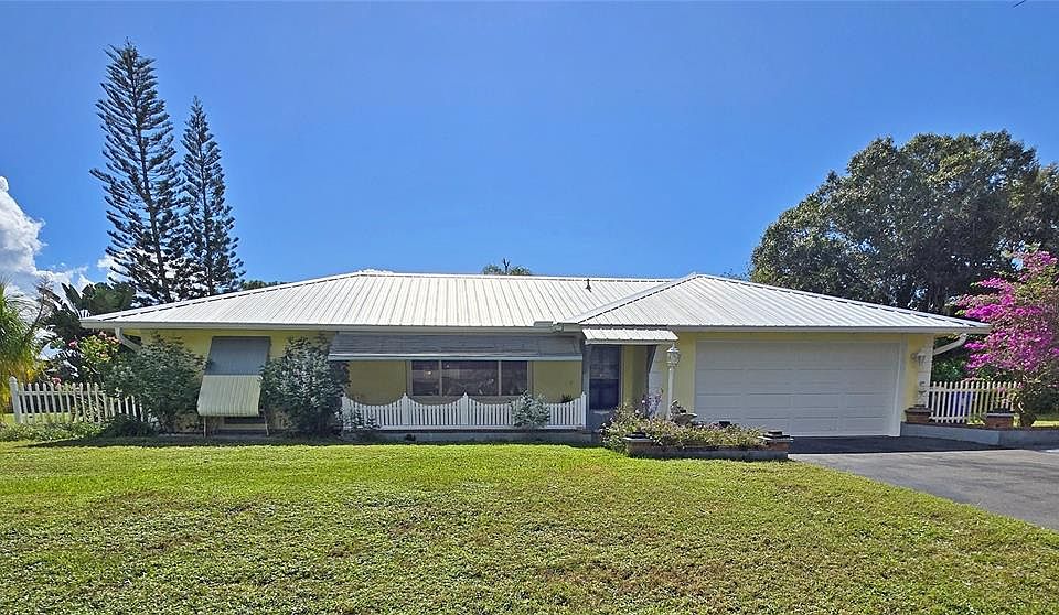 New metal roofOversized two-car garageInsulated doorHalf-acre lotEnergy-efficient vinyl windowsSplit floor planSpacious florida room