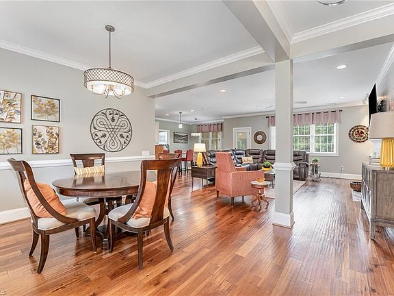 Beautiful one-level Brick home with an Open floor. Located on a cul-de-sac lot with a wonderful view of the Common area and woods. This home features 9 ft ceilings, a formal dining room, and a breakfast area. A living room with w/fireplace & gas logs. The kitchen features granite countertops, a tile backsplash, 42" cabinets, n island w/ seating & large walk-in pantry. Main level generously sized primary bedroom with a separate shower, a garden tub & a large walk-in closet. It is a split-bedroom floor plan. Additional features of this home are built-in shelves & Cabinets in the Living area, engineered wood floors, a generator, a Laundry room with a sink and cabinets, a screened back porch, a large patio, a covered front porch, and a walk-up attic with tons of storage & possibly the potential to expand the living area upstairs. The HOA includes lawn mowing.