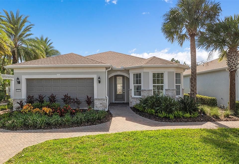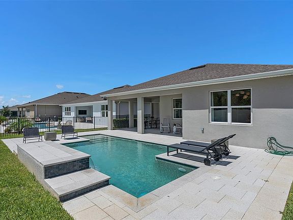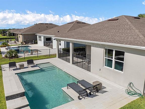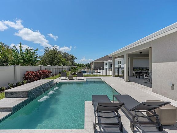 Under Construction. Del Webb Sunbridge is a gated 55+ active adult natural gas community offering new construction single family and villa homes with a low-maintenance lifestyle – and a Central Florida location in the center of it all. Del Webb Sunbridge offers an abundance of resort-style amenities with social events and activities centered in the 27,000-square foot clubhouse and planned by a full-time Lifestyle Director. With a zero-entry pool with lap lanes, resistance pool, poolside hammocks, and heated spa, sports courts, a movement studio, walking trails and more. Meet new friends at a resident club, take a painting class at one of the many art studios, attend a concert or show at the amphitheater, grab a bite at the on-site tavern & grille, or chat at the fire pits and grille pavilion. Get spoiled at Del Webb Sunbridge - after all, this is your time! Your home's exterior and yard maintenance are included, and fiber network provides up to gigabit internet speed. Del Webb Sunbridge’s resort amenities, sports courts, and Lifestyle Director with nearby Lake Nona truly make this the ideal neighborhood and a perfect location to call home. Step into the Mystique Model Home by Pulte! Originally a model home, this stunning one-story 3 bedroom, 2 bathroom, open flex room, and 2-car garage masterpiece boasts a pool situated on a homesite with no rear neighbors, a privacy wall at the rear of the home, and black aluminum fencing–offering both privacy and beauty. The open-concept layout seamlessly connects the gourmet kitchen, café, and gathering room, creating an airy atmosphere. The many windows bathe the entire space in natural light, while the tray ceiling in the gathering room adds an extra touch of sophistication, elevating the overall feeling of openness. The gourmet kitchen is a true focal point, featuring Whirlpool appliances, including a natural gas cooktop and French door refrigerator. Soft-close cabinetry, a range hood, mosaic tile backsplash, quartz countertops, and under-cabinet lighting add the perfect blend of style and convenience. The kitchen flows effortlessly into the café and gathering room, where a zero-corner sliding glass door leads to the extended covered lanai and pool, making this home ideal for seamless indoor-outdoor living. Retreat to the luxurious owner’s suite, a serene sanctuary with a spacious walk-in closet and a spa-like en suite bathroom. Dual vanity sinks, a walk-in shower, an enclosed toilet, and a linen closet complete the tranquil space. The two additional spare bedrooms and bathroom, along with the open flex room, provide ample space for family and guests. The upgraded laundry room with built-in cabinetry, quartz countertops, utility sink, and Whirlpool washer and dryer make daily tasks a breeze. Every detail of this home has been carefully curated, from the Shaw wood-look luxury vinyl plank flooring throughout to the tile flooring in the bathrooms and laundry. Designer-curated finishes elevate every corner of this home, including brushed nickel hardware and plumbing fixtures, 8’ interior doors, comfort-height toilets, and epoxy finish on the garage floor. With its stunning design and thoughtful touches, the Mystique home provides the perfect blend of luxury and functionality for today’s lifestyle. Don't miss out on your chance to own one of the best homes in the neighborhood! Schedule a tour today!