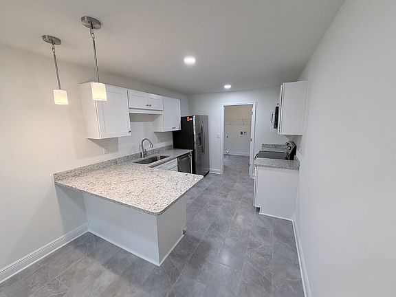 Breakfast barGranite countertopsPrivate driveway parkingCovered front porchLarge fenced backyardBright open layoutRecessed lighting
