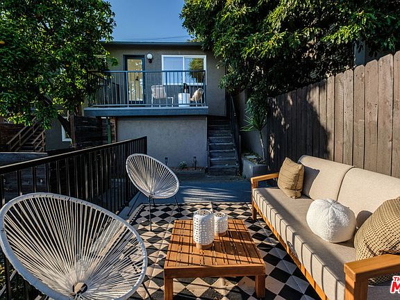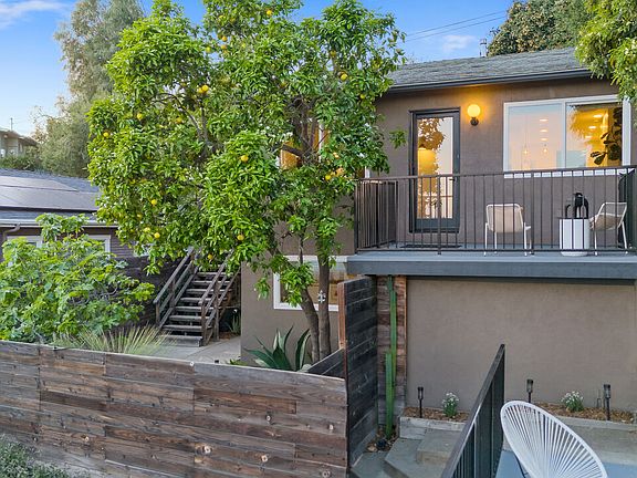 On a quiet street in the Garvanza area of Highland Park, this 2-bedroom, light-filled home offers the perfect blend of charm, comfort, and seamless indoor-outdoor living, surrounded by greenery and character at every turn. The living room and dining room brings in natural light from morning coffee to evening meals. The kitchen, ready for the home chef, includes Bosch appliances, Fisher Paykel paneled fridge, and plenty of pantry storage. Completing upstairs, a bedroom and full bath that can also be used for a home office or guest bedroom. The primary suite downstairs offers a calm retreat. Plenty of closet space including a hidden nook, a bathroom and sitting area with direct access to the terraced backyard where the true magic of this home unfolds. A garden bed ready for the homeowner with a green thumb. Multiple entertaining areas are scattered throughout: under the loquat tree, a dining area for al fresco meals; cozy seating areas to take in the hillside view; a dedicated yoga space ideal for sunrise stretches or to unwind beneath the stars; and lastly a yurt, a cozy hideout made for reading, creative work, or hosting hangouts into the night. The entire outdoor space a peaceful extension of the home. A street-side 1-car garage for easy parking or storage, and a dedicated utility and laundry room keeps everyday needs organized and out of sight. Only minutes from the buzz of York Blvd and Figueroa, but a world away when home.