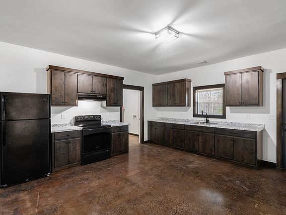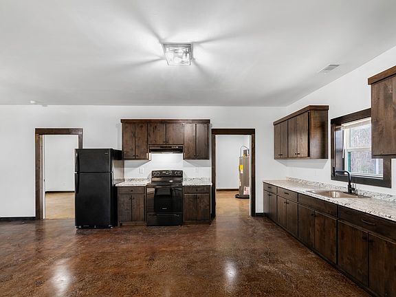 This 3BR/2BA brand new construction duplex is all one level and features a clean, modern aesthetic with a warm, rustic edge. The stained and sealed concrete floors create a contemporary loft-style feel. The central room is an open concept space and includes a living area, dining area, and kitchen with BRAND NEW stainless steel appliances and custom, soft-close kitchen cabinets. On the left side of the central room is the master bedroom, which includes a spacious walk-in closet and ensuite bathroom with linen shelves. On the right side are two bedrooms with good-sized closets, and between them is a full-sized bathroom. Off the kitchen is a utility room with washer / dryer connections, and extra space for storage or even a standalone freezer. The front patio is covered and has easy and level access from the gravel parking area, which offers plenty of parking. The back patio/porch is also covered and large enough for a grill and seating, and looks out into a peaceful wooded area. The water is included in the rent. No smoking or vaping is permitted, and no pets are allowed - no exceptions to either.