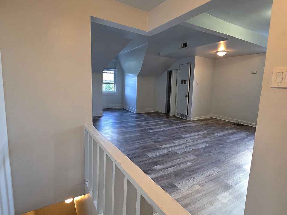 This charming top-floor apartment features new flooring, fresh paint, and modern lighting throughout. The updated kitchen includes stainless steel appliances and warm wood cabinets, with an open layout that offers a bright and comfortable living space. The unit has a cozy feel with sloped ceilings and plenty of natural light, perfect for anyone looking for a quiet home in a convenient location near East Liberty.