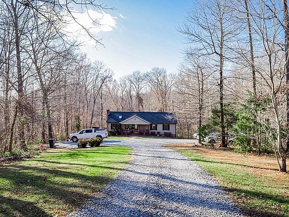 Nice Ranch that is private, but close to town. 4Bedrooms and 3 Baths. New Granite kitchen countertops installed in 2025. New Trane Heat Pump in 2019. New Roof and 6 Gutters with Guards in 2021. New Stove in 2024. Open Floor Plan with Hardwood Floors re-sanded. Newer carpet in Bedrooms. A new well was put in 2024. Ceramic Tile in Basement Den and apartment.