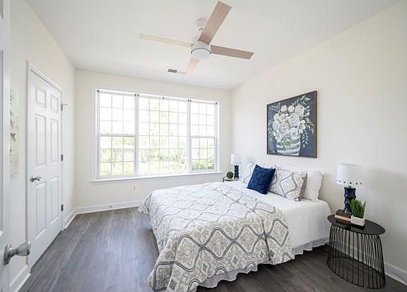 2 bedroom, 2.5 bathroom, 2nd story, corner unit condo in sought after Cobblestone Square. This unique 1200 square foot unit is filled with natural light and features 2 master bedrooms each with a walk in closet and full bathroom, perfect for a single tenant or multiple tenants. Full kitchen with new fridge, pantry and dishwasher. The condo has fresh paint, new vinyl flooring throughout, central air/heat, in unit washer/dryer, and ceiling fans throughout. The rental includes one designated parking spot, ample additional guest parking, a spacious community center, gym, and pool. Conveniently located minutes away from the Virginia Railway Express (VRE), downtown Fredericksburg, and Mary Washington Hospital this condo offers a great space at an exceptional value: $2500 per month including all utilities except internet/cable, credit check plus first month rent required.