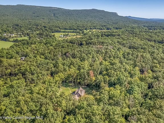 Tucked away in a peaceful country setting yet just minutes from some of the Hudson Valley's most beloved destinations, this thoughtfully designed home offers the perfect balance of luxury, comfort, and sustainability. A light-filled open floor plan showcases soaring ceilings and a beautiful stone fireplace that anchors the living space. Walls of windows bring the outdoors in, seamlessly connecting the interior with its natural surroundings. An elegant chef's kitchen featuring custom cabinetry, high-end appliances, a generous center island, and a wine bar—is ideal for both everyday living and entertaining. First-floor primary bedroom, complete with an en-suite bath, walk-in closet, and private porch access. Upstairs, two additional bedrooms, a full bath, and family room provide inviting accommodations for guests or quiet relaxation. Practical details, such as a breezeway-connected two-car garage and mudroom, adds both convenience and charm. A full basement offers a wine cellar and walk-out access, while a whole-house generator provides peace of mind year-round. A state-of-the-art geothermal system enhances the home's energy efficiency, underscoring its modern sustainability. The property is securely gated and enclosed by surround fencing, creating a private haven of peace and tranquility. Designed for both leisure and adventure, the landscape invites you to gather around the firepit and enjoy the ridge views or explore the wooded trails. Expansive patios and decks create the perfect backdrop for al fresco dining and entertaining. Completed just last year and enhanced with premium upgrades, this residence is truly turnkey and one of a kind. With proximity to Minnewaska State Park, Mohonk Preserve, Tillson Lake, Wildflower Farms and countless farm-to-table experiences, the best of Hudson Valley living is at your doorstep.