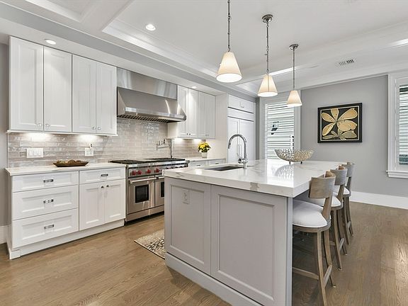 - Features: Coffered Ceiling(s), Flooring - Hardwood, Countertops - Stone/Granite/Solid, Kitchen Island, Cabinets - Upgraded, Open Floorplan, Recessed Lighting, Stainless Steel Appliances, Wine Chiller, Gas Stove