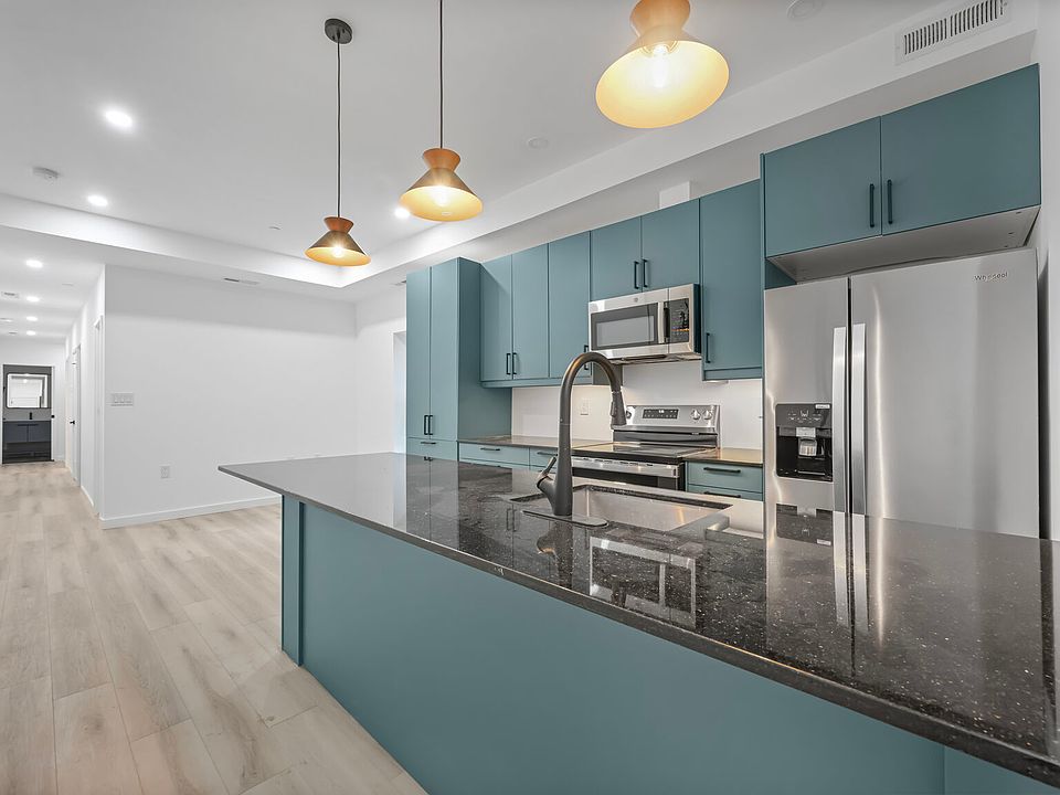 This four bedroom apartment is directly across from the Howard Theatre, two blocks from the Shaw Metro, and three blocks from the Whole Foods. There's stylish new cabinets and a breakfast bar, washer and dryer ensuite, stainless steel range, microwave, dishwasher. Bathrooms with tub and shower, thoughtuflly designed tile, central heating and cooling.