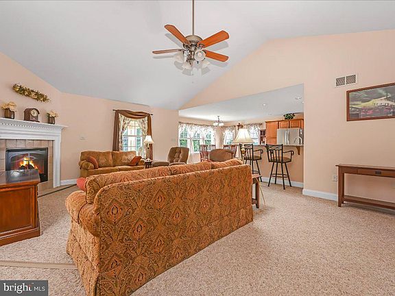 Come home to this single story beauty in Barons Ridge. Character abounds the moment you arrive, featuring the stone/vinyl exterior with carriage style garage entry doors and lush landscaping with carefully thought out seasonal plantings. Lovely entryway featuring hardwood flooring leading to a spacious great room with vaulted ceiling, gas fireplace with tiled mantel. The large kitchen features decorative Quartz countertops with Corian backsplash and eating area surrounded by 5 windows providing an abundance of of natural light. Enjoy the updated stainless steel appliances, including a 30" double oven gas range, all of which convey with the home. Retreat to the Four Seasons room with walls of windows overlooking the rear yard backed by the municipal park or exit the sunroom through the sliding doors leading to the Trex deck surrounded by a stone patio. The primary bedroom features night shades, walk-in closet, linen closet and bath with dual sinks and shower stall. Tilt-in windows throughout for easy cleaning, recessed lighting in kitchen. The laundry room features a utility sink and washer and dryer included in sale. The full basement featuring Superior walls can be finished for 1,780 additional square feet of living space with Bilco door for access to the rear yard. An easy walk to tennis courts, baseball field, schools and the park. You will want to call this home your own!