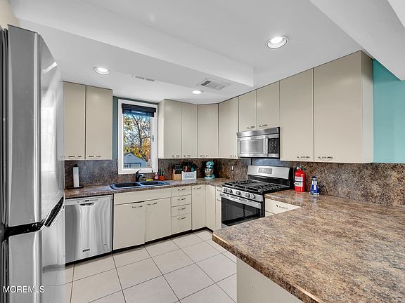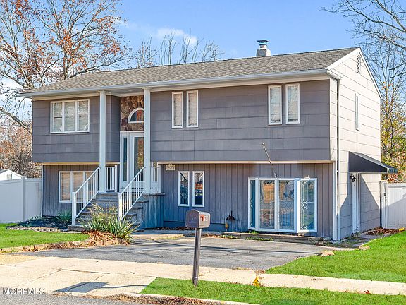 Come see this transformed bi-level located in Herbertsville section of Brick. The traditional bi-level layout has been modified for modern living with living room and kitchen on the ground floor for easy flow and everyday convenience, while all four bedrooms are located on the upper level for privacy and quiet retreat. Great for entertaining! The family room has sliding glass doors that open to partially covered back deck, above ground pool and fenced in yard. Recent upgrades provide peace of mind and energy efficiency, including: New water heater, furnace and central A/C system (8/2025) with a 10-year transferable parts warranty. Washer and dryer (2/2025) included. The oversized driveway provides plenty of parking.
