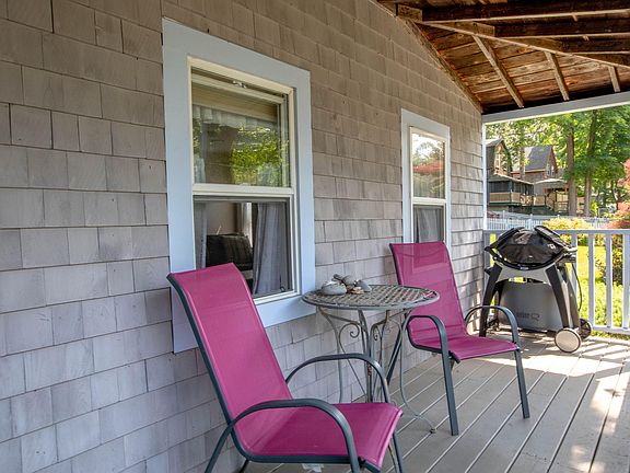 The two-bedroom, seasonal cottage is one row back from the Diamond Island Pass and a quick 5-minute walk to the beach.