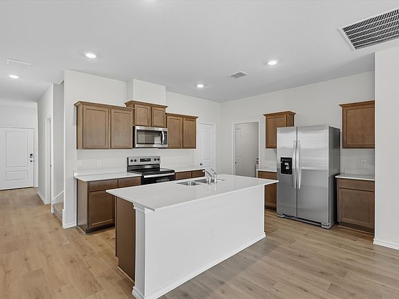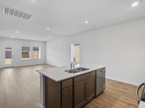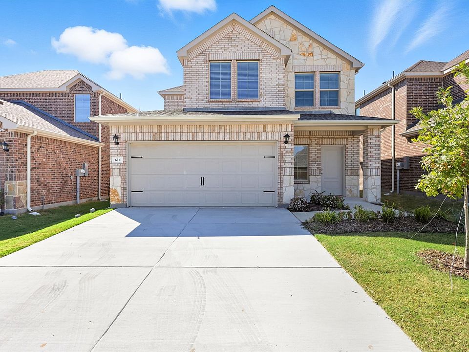 Stunning home nestled in the charming town of Pilot Point, TX! This beautifully crafted 4-bedroom, 2.5-bath residence offers 2,133 square feet of smart living space with a functional and stylish design perfect for modern families. Move-in ready with refrigerator, washer, and dryer included. Step inside and be greeted by luxury vinyl plank flooring flowing through the open-concept main level, connecting the spacious family and dining areas to the heart of the home the kitchen. Enjoy cooking and entertaining in your bright, contemporary kitchen featuring a large island, stainless steel appliances, sleek countertops, ample cabinetry, and a generous walk-in pantry. The primary suite is privately tucked on the main floor and includes a large walk-in closet, double vanities, and an oversized walk-in shower. Upstairs, you'll find three more well-sized bedrooms, a full bath, and a versatile game room perfect for movie nights, study space, or a home office. Step outside to your covered back patio and enjoy the large fenced backyard ideal for pets, playtime, or weekend BBQs. The home's exterior showcases a charming brick-and-stone elevation, a welcoming front porch, and a two-car garage. Located in a peaceful community just minutes from Lake Ray Roberts, parks, dining, and top-rated schools, this home truly offers the best of small-town charm with modern convenience. Don't miss this opportunity to make this your next home sweet home!