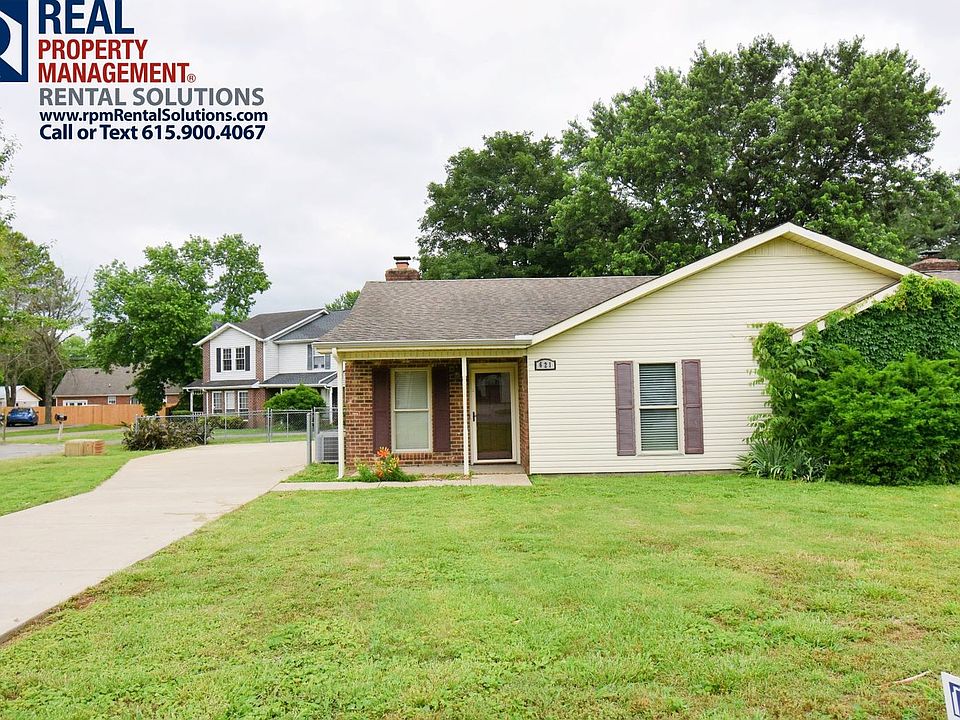 Enjoy the ease of one level living in this zero-lot line home featuring a large fenced in back yard with covered patio along with a large storage closet. Inside you will find gorgeous floors throughout and a great brick fireplace in the living area. Kitchen comes with all appliances included! All bedrooms have ceiling fans. The home has been freshly painted as well! Off of S. Church Street and close to I-24, restaurants and shopping!