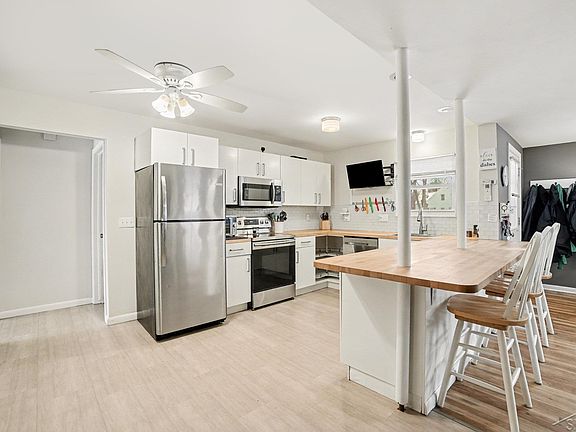 Inviting open floor planLandscaped yardModern stainless-steel appliancesSpacious backyard deckStunning hardwood floorsFully fenced for privacyLarge butcher-block breakfast bar