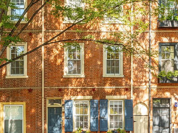Location. Style. Comfort. History. Green Space. 621 Lombard offers it all. Perfectly situated in Washington Square West at the crossroads of Society Hill, Queen Village, and Bella Vista, this home places you within steps of the city’s best dining, shopping, and cultural destinations. Directly across from Starr Garden Park, the property greets you with a quintessential historic brick façade—the kind that defines Philadelphia’s timeless charm. Step inside through the classic six-panel door and you’ll find a warm, inviting interior that seamlessly blends historic character with modern comfort. The main living level features original pine floors, abundant natural light filtered through lush greenery, and a reimagined historic fireplace, rebuilt with an efficient wood-burning insert. Built-in cabinetry flanks the fireplace wall, providing both function and beauty, while thoughtful details like a mirrored cabinet and coat closet add everyday convenience. The kitchen is a true centerpiece, designed for both style and utility. A Carrara marble peninsula with seating is framed by an exposed brick arch with custom shelving. White Shaker cabinets, a herringbone marble backsplash, and black granite counters complement high-end stainless steel appliances. A built-in dining banquette with surrounding cabinetry adds charm and maximizes storage. From here, modern French doors open to a private 500-square-foot landscaped garden—a rare urban retreat ideal for entertaining, grilling, or simply relaxing under the shade of mature trees. Upstairs, the second floor offers two bright and spacious bedrooms, accented by original pine floors, crown molding, and elegant paneling. A full hall bath features classic subway tile, a tiled tub/shower, and striking blue accents for a pop of character. The third-floor owner’s suite is a true sanctuary. The spacious, gabled-ceiling bedroom includes custom built-ins, dual closets, and a dedicated media niche. Across the hall, a dressing area with additional closets leads to a luxurious en-suite bath featuring floor-to-ceiling subway tile, Portuguese-inspired flooring, a frameless glass shower with dual shower heads, and a double vanity with oversized mirrored storage. Additional highlights include a full basement with laundry, ample storage, and convenient Bilco doors for direct street access. All of this comes with an unbeatable location—within a 15-minute walk to the Avenue of the Arts, Chinatown, Old City, Passyunk Avenue, and the Italian Market, plus Whole Foods just a few blocks away. Schedule your private showing today and experience the rare blend of history, style, and convenience at 621 Lombard.