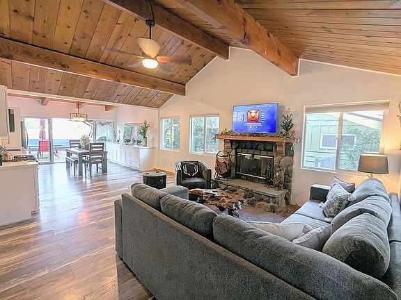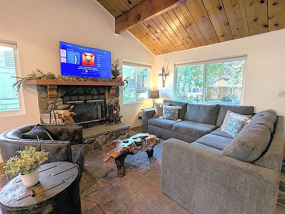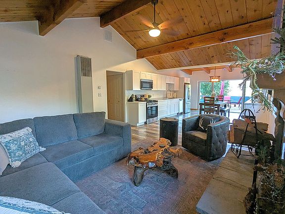 The newly remodeled 1,100 sq.ft. home offers open-concept living, designed for entertaining and relaxation. From the moment you step inside, you’ll be welcomed by a bright and spacious floor plan with vaulted tongue-and-groove ceilings, a cozy rock fireplace and expansive windows that frame uninterrupted views of Gold Mountain.