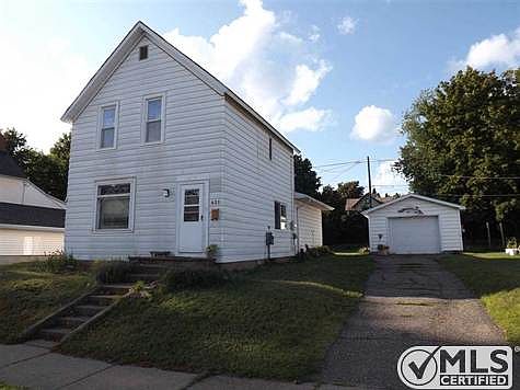Darling 3 bedroom 1 bath home. Fenced back yard, 1 car garage, full basement with lots of potential double lot and yard beyond back fence. Living room and formal dining room have original crystal chandelier, hardwood floors, re-purposed ladder shelving and chalkboard wall! Large eat in kitchen with side bar, pantry and lots of counter space. The main floor bath is pretty in pink with some retro and modern accents. Upstairs are all 3 bedrooms with fresh neutral paint colors and 2 bedrooms have built in closet organizers. The drive is paved, plenty of off street parking and the home has a rear door leading to the private fenced backyard . This home is the ideal starter home and ready for a new owner! Should be good for RD financing.
