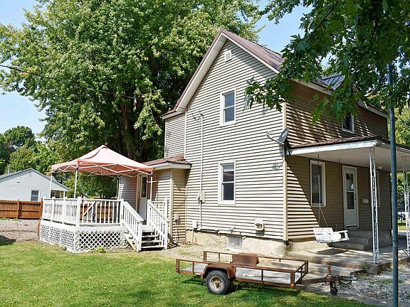 Two story home with a fenced in backyard and a wood deck to relax on. The vinyl siding and metal roof were installed within the last five years. A mini split system was also installed approximately two years ago along with a new water heater in 2023. Some of the main features of the inside include a main floor family room, updated bathroom, three bedrooms, dining/ living room combo, kitchen with oak cabinets and main floor laundry. Appliances are also included in the sales price.