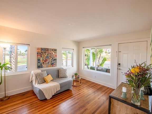 This west of 5, beautiful beach bungalow is a dream come true! Walk through the front door and you are greeted by it's charming warmth. Original hardwood floors adorn the living room, hallway and both bedrooms. Loads of natural light complement the easy living lifestyle the property offers. Enjoy a morning cup of coffee or evening glass of wine on the back deck while gazing at the pacific ocean. Take a short walk or bike ride to the Historic Oceanside Pier, Thursday's Framers Market, fabulous restaurants, coffee houses, amazing beaches and the Historic Oceanside Harbor. Quick and easy access to I-5 & 76 Hwy. Zoned Residential High Density. RV parking, room to build multiple units and ADU. Think Vacation Rental, Investment Potential!