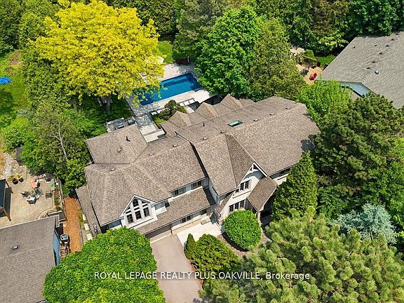 Architecturally designed and beautifully crafted 4-bedroom, 5-bath builders own custom home in South Burlington offering over 3,740 sqft of luxurious living space on the above ground levels. Nestled in a mature treed setting on a rare 86' x 193' deep lot, this stunning property features an 8-car driveway with hammerhead parking, 3-car garage (with roll-up rear door for backyard access), and exceptional curb appeal. Inside, enjoy hardwood flooring, crown mouldings, and elegant formal living/dining rooms. The open-concept gourmet kitchen boasts granite counters, a large island, stainless steel appliances, pot lights, bright skylights and timeless finishes. The spacious family room is enhanced by vaulted ceilings and a double-sided stone fireplace, perfect for cozy evenings. A rare find, the main floor office with separate entrance offers great flexibility for professionals or multi-generational living. Upstairs, the impressive primary suite features vaulted ceilings, double walk-in closets, a luxurious 5-pc ensuite, and peek-a-boo lake views. Additional bedrooms are generously sized, with ensuite access and skylights providing abundant natural light. The fully finished lower level adds even more living space for recreation or home theatre. Outside, the extra-deep private backyard is an entertainer's dream, featuring a resort-style setting complete with an in-ground salt-water pool, lush landscaping, custom stone gas fire pit with built-in seating, custom stone gas bbq island with granite counter, and multiple seating areas, with separate access through a backyard mudroom with shower. With almost 5000 sqft of living space, there is plenty of room to enjoy this magnificent property! Located just minutes to downtown Burlington, waterfront, beaches, Burlington Golf & Country Club, LaSalle Park Marina, top-rated schools, hospital, parks, and highway access. A rare opportunity to own lakeside luxury in one of Burlington's most sought-after locations.