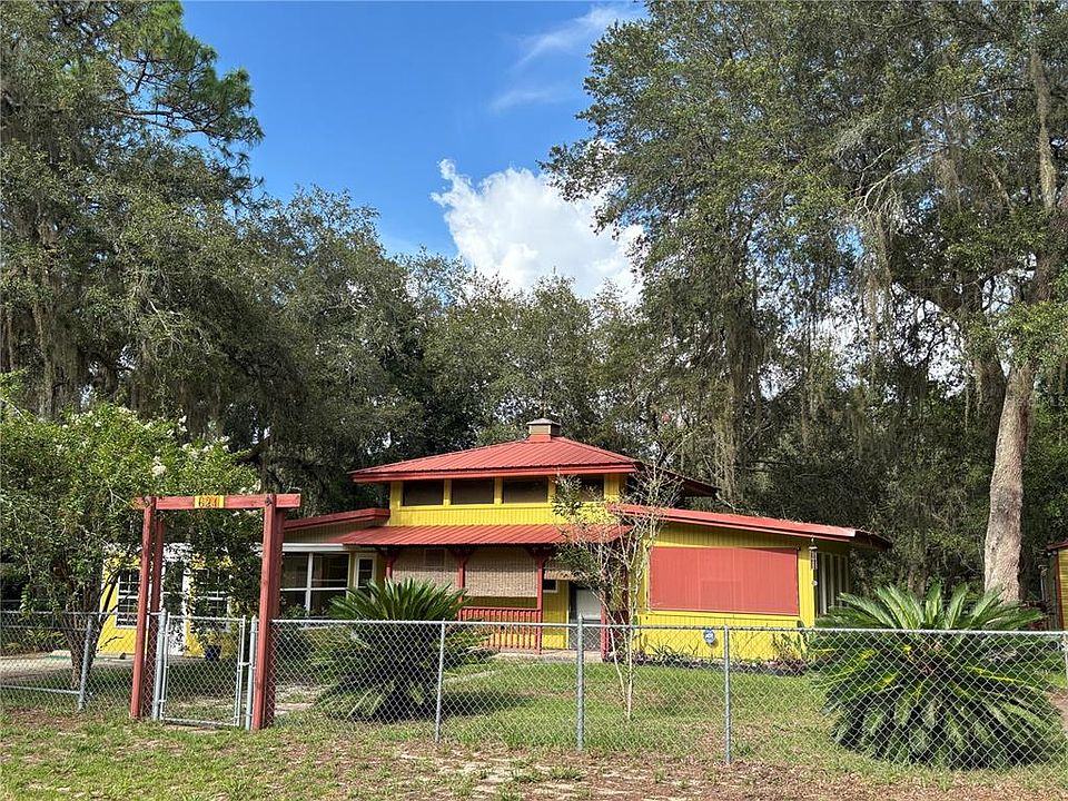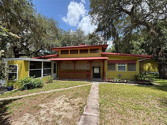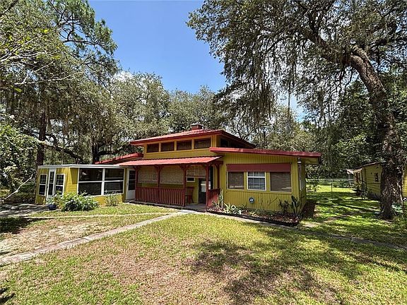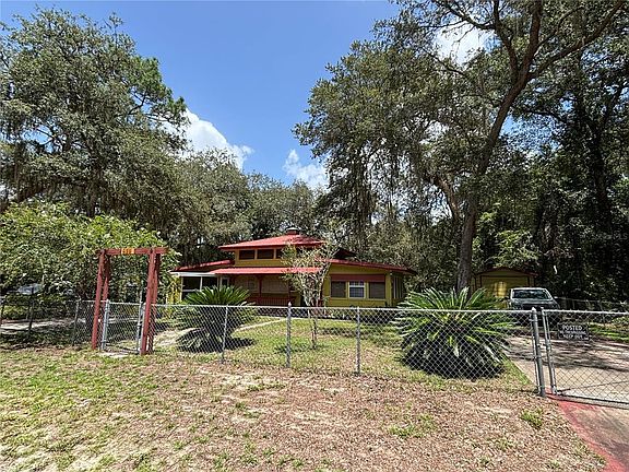 Come see this very unique, cute and cozy 2/1 two story gorgeous Frame Home that features many extras! Unique spiral staircase in the guest bedroom (makes guest bedroom small but staircase could be removed) that leads to a small loft area that can be used for storage or a small sleeping area. Enjoy the neighborhood Lake access featuring a docking area to beautiful Lake Owen. This home has been meticulously updated with updates that include per seller: new 50 gallon hot water heater in 2021, new Goodman AC unit in 2018, Septic Tank was pumped in 2022, new Well tank and pressure switch in 2022, inside of the home was freshly painted in 2022, updated electric breakers in 2022, new washer and dryer in 2022, new 200 amp service panel Siemans brand 120/240V in 2021, new pump switch in 2022, new kitchen faucet in 2022, new refrigerator in 2022, new surge protect at the meter in 2023 (Clay Electric), all new caulking and replacement of window sills in 2023, new light fixtures and fans. Complete outside of the home along with both sheds all newly painted in 2023 along with a new metal roof on the 20 x 12 shed. Inside features lots of natural light with beautiful clerestory windows throughout the home! 13 x 16 living room with lots of windows that add to the natural lighting. Beautiful kitchen with tile backsplash along with a pantry and kitchen island bar. Spacious 13 x 16 master bedroom leading to a 13 x 16 front enclosed porch with windows. Large 19 x 10 bonus room with a kitchen window bar. Breezy 20 x 4 front porch with additional washer hook up, currently the home has inside laundry in the bonus room. Outside feature a beautiful meticulously landscaped yard with multiple plant/flowerbeds throughout, gorgeous trees and luscious green grass all in a completely fenced in yard with two gated concrete driveway entrances. Help keep the heat out and electric bill down with cost-effective exterior rolling shades on the front of the home and front porch. Convenient double driveways for extra parking along with an RV hookup all on .23 acre! Spacious 20 x 12 and 16 x 12 metal sheds with electric/workshop area and a 13 x 9 back enclosed patio. This home has all you need make it your yours today! Home is located in the Ocala National Forest which affords you almost a ½ million acres of Forest to roam, 600 lakes, 2 rivers, Juniper Springs, Silver Glen Springs, Salt Springs, Swimming, Skiing, Big BASS Fishing, Boating, Camping, Hiking, Horseback riding and some of the best ATV riding anywhere. Daytona Beach is just 1 hour away. Let the fun begin! You need it!