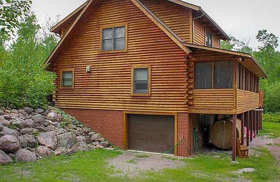 Garden Lake Log Home - Log home on Garden Lake, 1950 sq. ft. and 525 ft. of level shoreline. Permanent dock. Detached 4 car garage with loft + one car tuck-under garage + carport. Home features an open living, dining area & kitchen with a floor to ceiling rock, woodburning fireplace. Vaulted ceiling. Views of the lake from every room. Master bedroom & full bath on the main level. Loft bedroom & full bath. Lakeside enclosed porch, 30 X 8, accessed from the dining area and master bedroom. Wraparound deck. Lower walk-out level is a full basement with a bath, tuckunder garage, wood stove, furnace. Barrel sauna right outside of the lower level. Central Air. Drilled well & septic system. Access to White Iron, Farm, South Farm, the Kawishiwi River & the BWCA. This one owner lovely home has been well maintained. Private. Good road access and just 10 minutes from Ely.