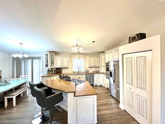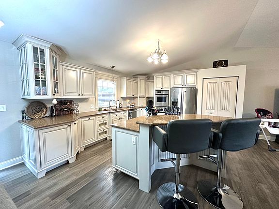 This very spacious tri-level home features 4 bedrooms and 3 bathrooms, offering an open-concept main floor with a vaulted ceiling that connects the living room to a kitchen equipped with a center island dining area, beautiful white cabinetry, high-quality appliances, hard surface counter tops, built in oven, pantry and hard surface wood veneer flooring that extends seamlessly into the living space; the lower level provides an additional family room with a striking stone gas fireplace, the 4th bedroom, a three-quarter bath, and a laundry room, while upstairs you'll find 3 bedrooms and a full bath with the primary suite enjoying its own private bathroom. The lower level has the potential of a nice related living space. In addition to all of this, the sellers added finished crawlspace area that has been converted into a playroom area adjacent to the lower-level family room, providing an additional, versatile space for recreational activities or a huge finished storage area. This home also offers a three-car heated attached garage, ample off-street parking for additional vehicles, covered front porch, a fenced backyard with a deck and storage shed, and a prime location near Route 2 and Route 231 with schools, shopping, and restaurants just minutes away.
