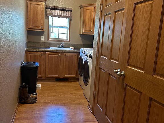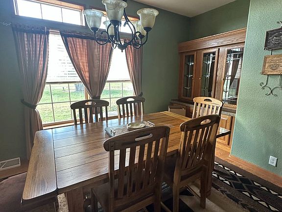 Ranch style homeRaised wood deckNewer asphalt shingle roofOut buildings for storageGas fireplaceOpen conceptFenceline feedbunks