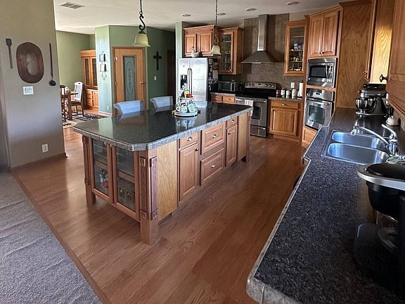 Check out this ranch style home with lots of space on a 20.25 acre site southeast of Deshler or southwest of Hebron! The first floor living area features an open concept with 9 feet ceilings. There is a large living room for entertaining, formal dining area, large kitchen with island and bar, two bedrooms, two bathrooms, entry way/foyer, an office and a large laundry room with lots of storage. The family room has a distintive gas fireplace. The large master bedroom has a master bath with separate walkin shower and separate jacuzzi tub. The hall bath has a combination tub/shower. The kitchen has oak cabinetry, granite countertops, tile backsplash, pantry, center bar/ island and all stainless appliances. An open staircase leads to a full, unfinished basement. Updating includes newer vinyl siding and newer asphalt shingle roof. The attached two car garage has 576 ft2 of space; a raised wood deck is accessed from breakfast nook. There are several out buildings for storage and Harvestores that could be used for grain storage There are numerous fenceline feedbunks and over 50,000 ft2 of concrete for confining livestock. This property includes approximately 20.25 acres including a 8.5 acres building site and 10.7 acres of dry cropland. Give us a call today to view this home!