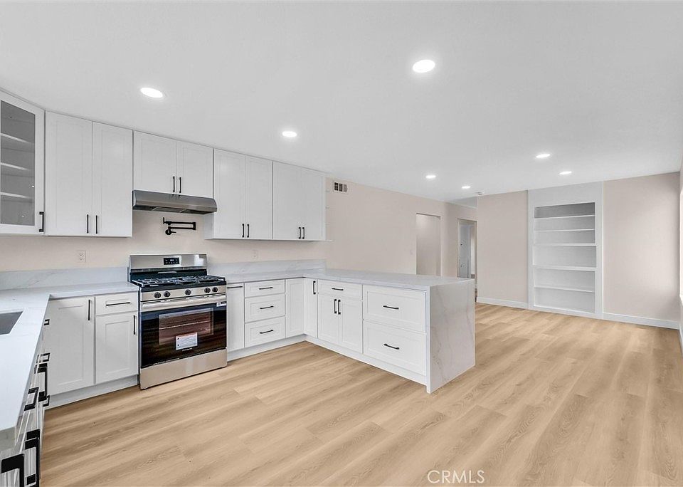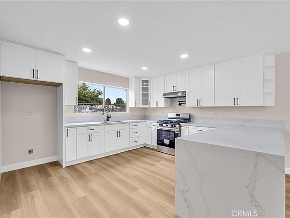 Beautiful Remodeled Home with large, open Living Spaces. This house features a large living room, beautifully remodeled kitchen, newly installed flooring throughout, an extra large driveway, fruit trees, remodeled bathrooms and sits at a great location, near shopping, freeways and more!