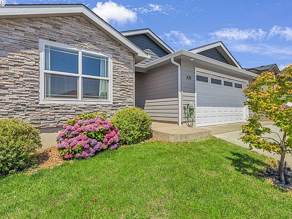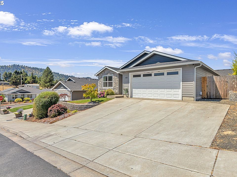 Welcome to 621 SE Rose Ridge Dr in Winston’s desirable Orchard View neighborhood—a beautifully maintained single-level home built in 2020. This 3-bedroom, 2-bath home offers approximately 1,620 sq ft of thoughtfully designed living space on a landscaped 6,534 sq ft lot. The open-concept great room features vaulted ceilings, while the gourmet kitchen includes solid surface countertops, a stainless steel gas range, tile backsplash, and a central island with eating bar. The spacious master suite boasts a walk-in closet and private bath, complemented by a split-bedroom layout for added privacy. Enjoy outdoor living on the covered patio, and benefit from the attached two-car garage and minimal-step entry. Situated in a quiet, well-kept neighborhood with easy access to local parks and daily amenities, this move-in ready home is ideal for those seeking comfort, style, and convenience all in one.