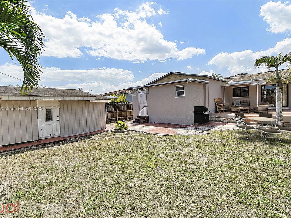 Endless potential for future homeowners or investors within sought after Flagami. Spacious well maintained home with a functional floor plan that could be used as a 3 bedroom, 3 bath home or be split into a 2 bedroom, 2 bath with a true in law suite with private back entrance and storage shed. Expansive covered terrace and backyard are ideal for outdoor entertaining. Recent updates include new roof, fresh interior and exterior paint and air conditioner. Gated circular driveway with extra side parking. Central location near public transportation, shops and restaurants. A must see!