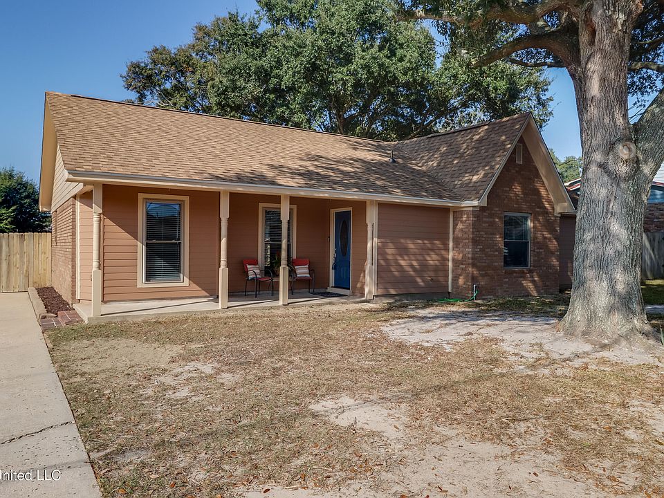 Coastal charm meets modern comfort in this stunning, move in ready home that feels brand new. Step inside and you'll be welcomed by a bright foyer that opens into a spacious living room, complete with a cozy fireplace and custom built in shelving. The open layout flows seamlessly into the dining area and kitchen, where electric appliances and a brand-new dishwasher make everyday living effortless. Beautiful vinyl plank flooring runs throughout the home, adding both style and durability. The primary suite features a freshly remodeled bath completed in 2024, while the hall bath showcases timeless updates from its 2007 renovation. Storage is abundant thanks to large closets with wood shelving, and every detail has been thoughtfully maintained. Major upgrades provide peace of mind, including a new roof and hardboard siding in 2024, fresh interior paint in 2025, new windows and exterior doors installed in 2017, and a back porch awning added in 2021. Outdoors, a spacious backyard awaits with a brand-new fence installed in 2024 and a convenient storage shed. The location is unbeatable—Anniston Elementary School sits just beyond your backdoor, and the beach is only a short walk away. Offering the perfect blend of modern updates, inviting spaces, and coastal relaxation, this home is a true gem.