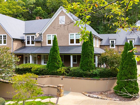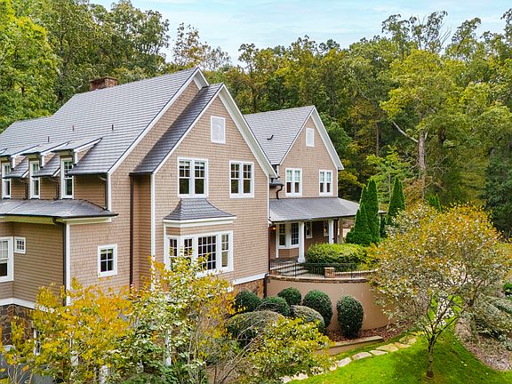 Experience luxury in this exceptional estate, situated in the iconic Greenwood neighborhood just a few miles from downtown Chapel Hill. Designed by award-winning UNC architect and Fulbright scholar Paul Kapp, this home combines modern craftsman aesthetics with superior craftsmanship and thoughtfully selected finishes. The exterior showcases a timeless design with cedar shakes, a copper-shingled roof, a charming wraparound porch, and exquisite landscaping accented by custom stone walls. Inside, ample windows and high ceilings create a bright and inviting atmosphere throughout. The main level flows effortlessly from the welcoming foyer to the spacious living room and the cozy family room. The gourmet kitchen is fully equipped for the discerning chef, featuring a six-burner Wolf range, double ovens, twin Bosch dishwashers, a large island with prep sink, and SubZero refrigerator. The primary suite is located at the rear of the home, with access to a back deck, two custom walk-in closets, and a spa-like bathroom complete with a sauna and washer/dryer. Three additional bedrooms on the second floor all feature ensuite baths with generous closets. A bonus/media room opens to a covered porch and leads to a massive walk-in attic, offering over 1,000 sq. ft. of potential space to be finished as desired. The lower level, completed by Will Johnson Building, includes a mirrored exercise room, fifth bedroom, wine room, full bath with shower, and an office/mudroom with direct access to the side yard. This level adds functionality and flexibility for any lifestyle needs. Additional features include a whole-house generator, three-car garage with exterior storage closets, a circular driveway, and a Tesla charging station. Bordering Battle Park, with more than two miles of trails leading to UNC and downtown, this estate offers the perfect balance of privacy and convenience in a highly coveted location. For those seeking exceptional quality, masterful design, and a prime address, this estate home is truly one-of-a-kind.