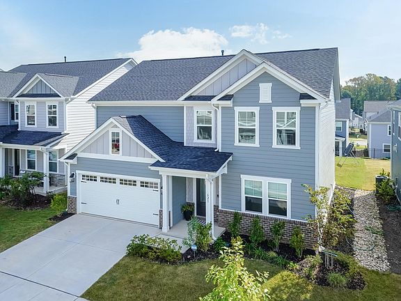 Welcome home to modern comfort and timeless style! This nearly-new home combines elegant design with thoughtful upgrades throughout. Step inside to discover gourmet kitchen cabinets, beautiful quartz countertops, a farmhouse sink, gleaming hardwood stairs, and a tray ceiling in the Owner's Suite. Featuring four bedrooms plus a dedicated office, it provides the perfect balance of relaxation and functionality. The heart of the home boasts an open floor plan with a bright kitchen and living area, ideal for gatherings. Don't miss the cozy sunroom filled with natural light - perfect for morning coffee, reading, or simply unwinding. Set in the heart of Wake Forest, while still close to local conveniences, this one-year-old home offers a move in ready lifestyle in a quiet, sought-after neighborhood!