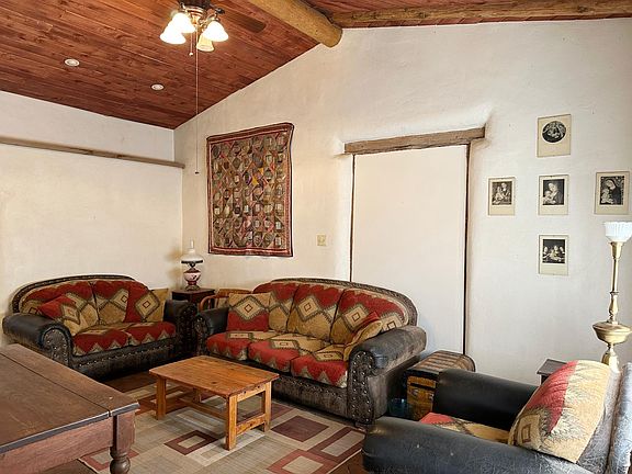 Fully furnished 2 bed 1 bath apartment, on the west side of Las Vegas NM! The property includes couches, coffee table, smart TV, dining set, mattresses, headboards, dressers, night stands, desk shelving, coat rack, microwave, coffee maker, iron, and most of the starter necessities for hygiene and comfort. The home features vaulted ceilings, brick, tile & bamboo flooring, radiant heating, covered off street parking for one car, and an outside patio area. UTILITIES INCLUDED & WIFI INLCUDED